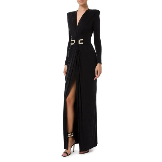 customized V Neck Women Evening Dresses 2025 Party Dresses With Slit Sheath Pleated Floor Length Prom Dresses robes de soirée فس