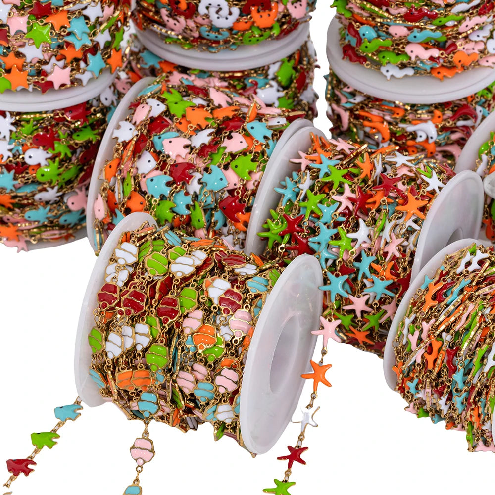 1Meter Stainless Steels Enamel Fish Crab Dolphin Ocean Animal Chains DIY Necklaces Bracelets Jewelry Making Accessorie Wholesale