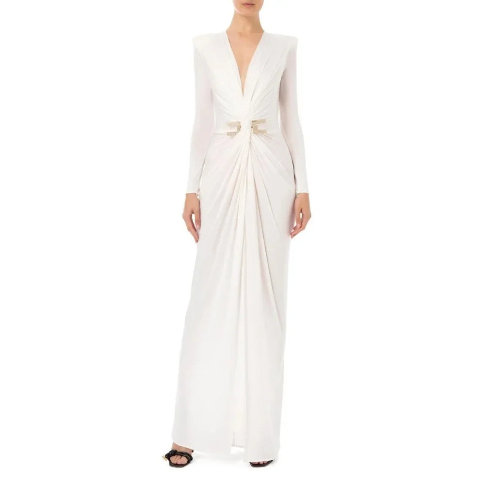 customized V Neck Women Evening Dresses 2025 Party Dresses With Slit Sheath Pleated Floor Length Prom Dresses robes de soirée فس
