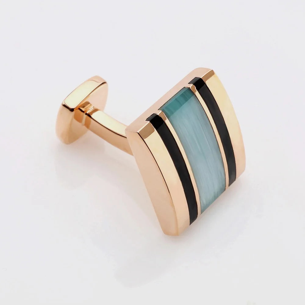 Hot Sale CadetBlue Cat Eye Cufflinks Men Jewelry Square Black Onyx Gemelos french shirt wedding dress tie clips&cuff links