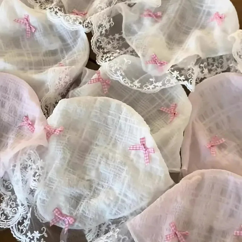 Korean Lace Bow Retro Triangular Scarf Solid Color Headscarf Trend Elegant Headwear for Women Girl Y2K Jewelry 2024 INS Bandana